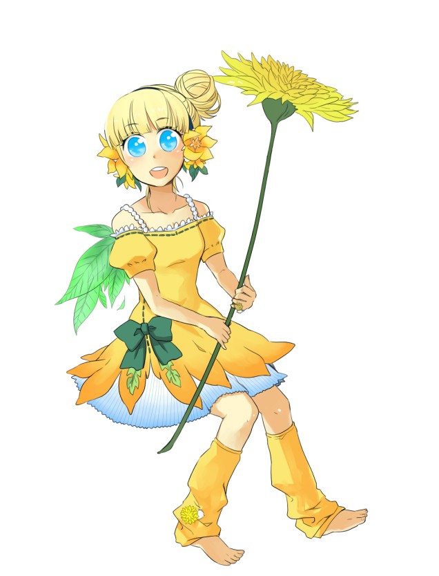 ◆キャラ詳細…12、3歳くらい/140cm後半くらい、細いけど肉付きは良い/微乳 ◆サブテーマ…薄めの金髪おだんご前髪ぱっつん/青空色のぱっちりした目/健康的な肌色/葉っぱの羽/花の耳当て/花びらスカート/裸足でレッグウォーマー