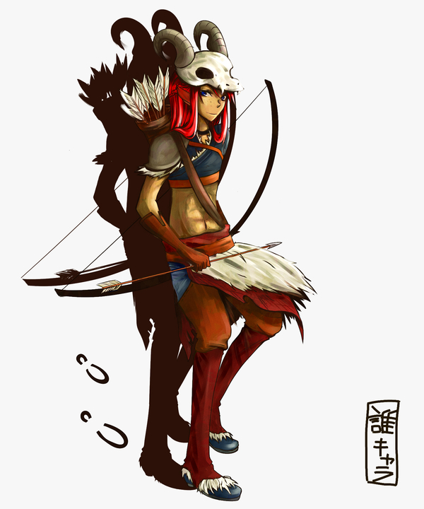 http://twitpic.com/qingk 20歳くらい・性別なしもしくは中性的・身長170前後で筋肉質 KW:【赤毛・そばかす・蹄鉄・矢じり・骨・ツリ目・毛皮】