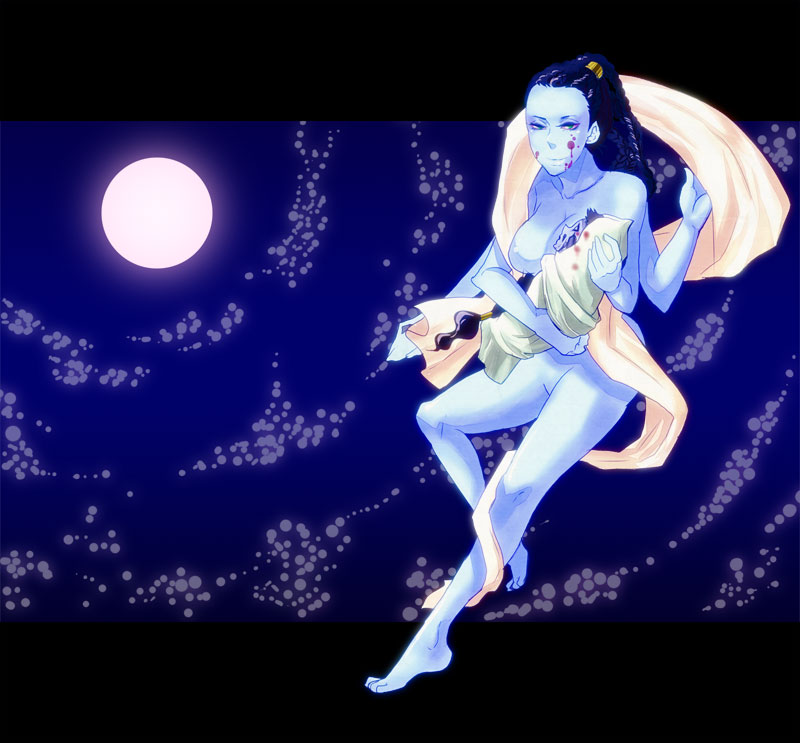 30前・女・むっちり巨乳 【青肌・多腕・黒髪でこ出し結い髪・返り血・破滅的・色気と母性が同居・目がギラギラ】